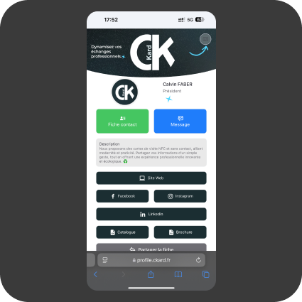 Échanger et partager vos informations n’aura jamais été aussi simple avec votre CKARD ! Digitalisez votre réseau en un instant et laissez une impression mémorable.